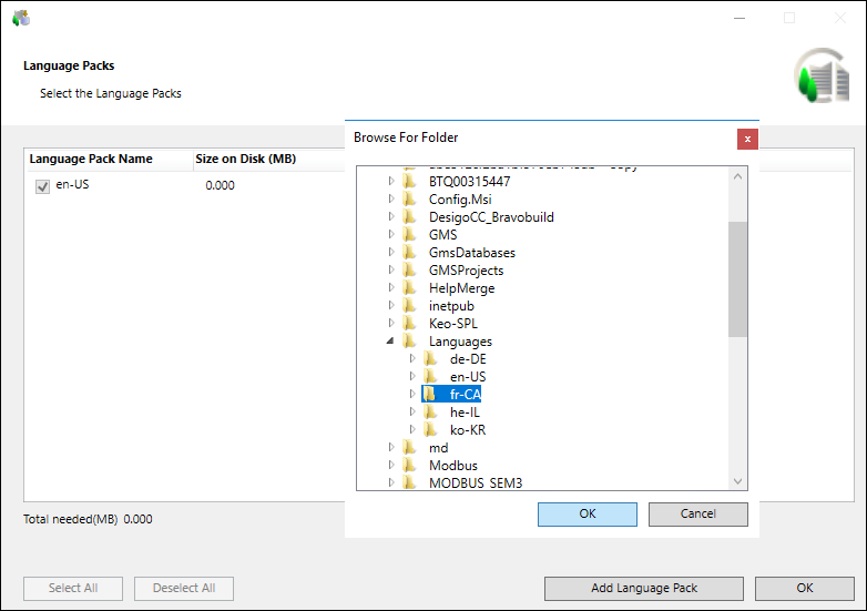NOTE 1: To add a language pack, the language pack must be available in the Languages folder. Alternatively, you can select the Languages folder itself, which in turn lists and selects by default all the language packs included in the Languages folder.