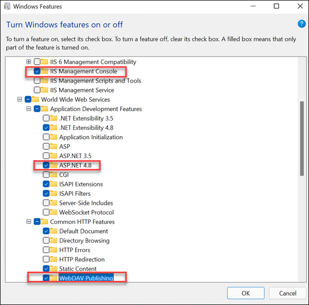 - Expand Internet Information Services > World Wide Web Services > Common HTTP Features, and select the WebDAV Publishing check box (this automatically checks other relevant boxes).