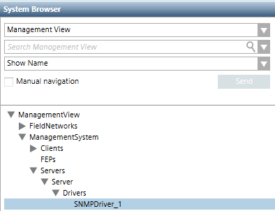 • In System Browser, select Project > Management System > Servers > Main Server > Drivers > [SNMP driver].