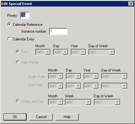 The Configure Event Parameters dialog box allows you to edit event parameters for several event types. The dialog box contains nine tabs to represent the nine event types.