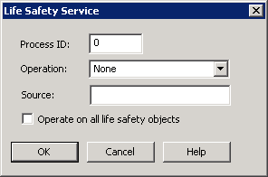 The Life Safety Service dialog box allows you to perform the life safety operation when you have a Life Safety Point or Zone selected.