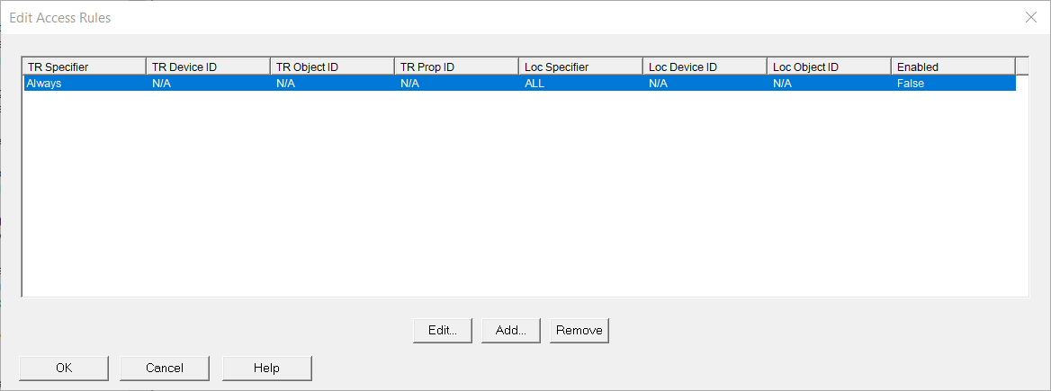 The Edit Access Rules dialog box allows you to edit access rules for the selected object.