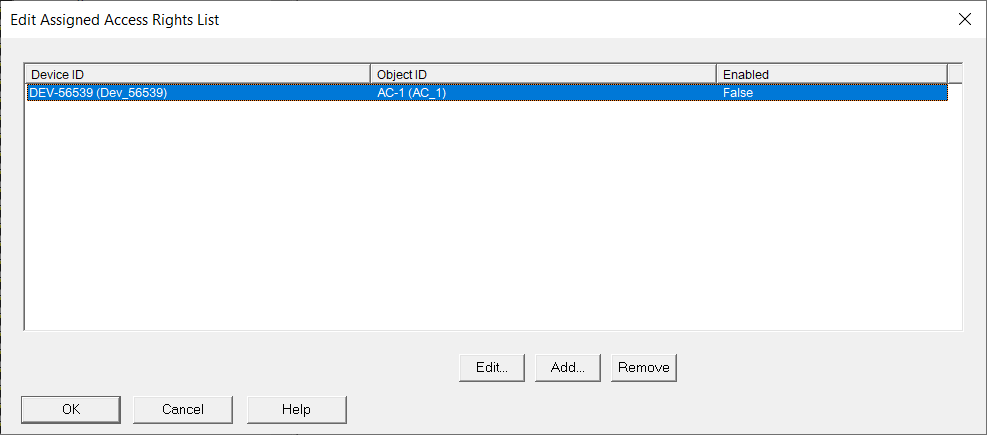 From the system tree, expand your BACnet device. From the Access Rights folder, select an object. In the Property Name column, double-click either negative-access-rules or positive-access-rules.