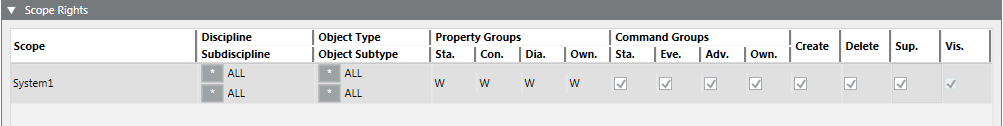 3. Configure the Scope entry as follows for the user group to have all rights: