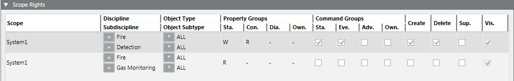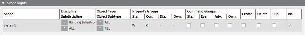 • Select the Command Groups, Create, Delete, Supervise and Vis. check boxes.
