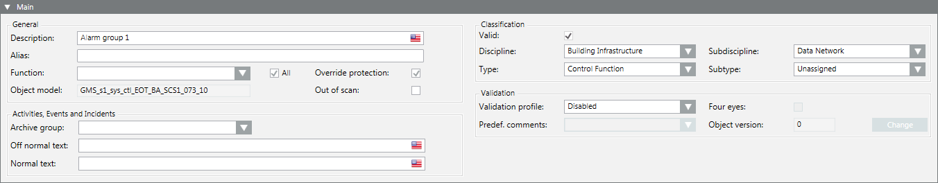 4. Open the Main expander and then Classification settings.