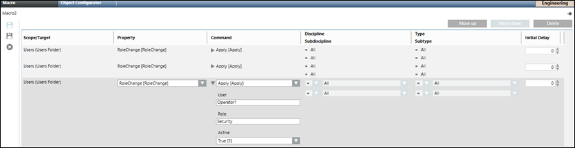 7. The macro is saved and displays below the Macros node and the role specified for the user is updated.
