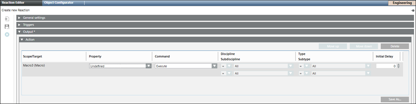 11. From the Output expander, open the Action expander.