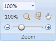 Zoom Indicator | Display the current scale factor of the active canvas and allows you to either select a pre-defined magnification from the drop-down menu or type a magnification value. | |