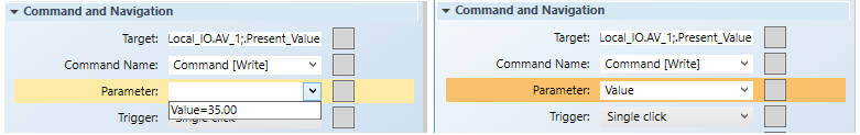 The Parameter information is entered in the Graphics Editor‘s Command Control properties: