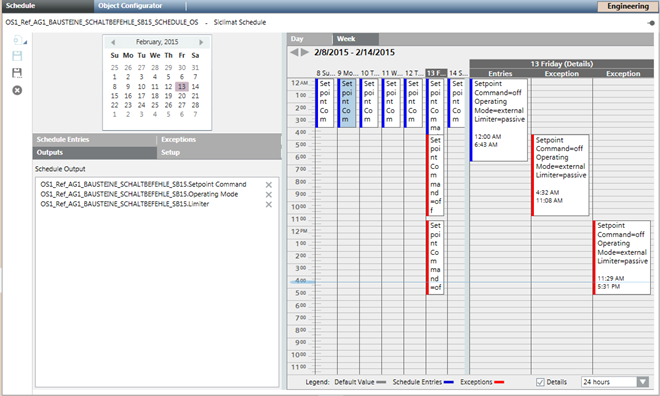 Calendars and time schedules allow for changing object parameters, set values and so on, for chronological control of specific plants and technical equipment.
