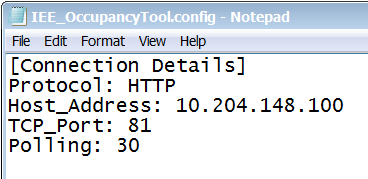 4. Edit the IEE_OccupancyTool.config file with Notepad or any other text editor.