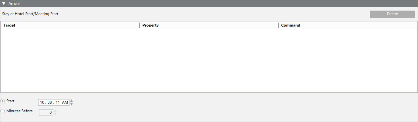 The Room Automation tab allows the configuring of a room’s comfort relevant to a guest’s arrival and/or departure. You can define one of the following conditions: