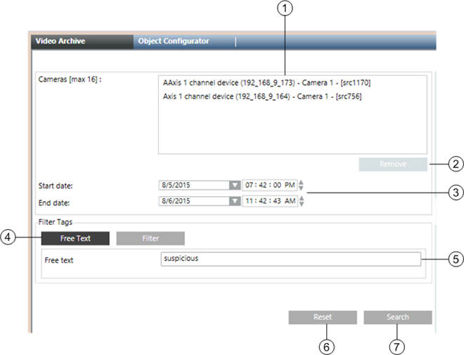 Allows for dragging-and-dropping up to 16 cameras, whose recordings will be included in the search