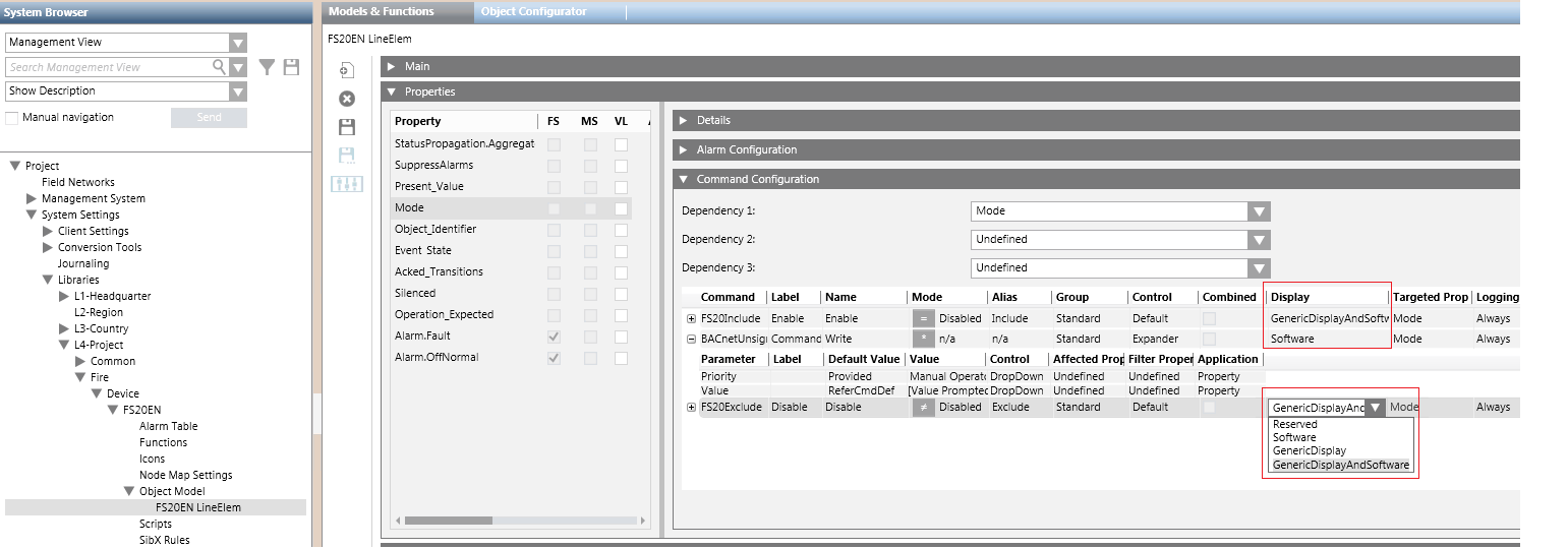 6. The customized folder is selected in System Settings > Libraries > L-customization level > Fire > Device > Fire_Device_FS20EN… > ObjectModel