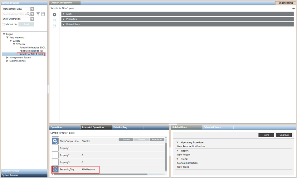 The Importer parses the CSV file row by row and imports the data in that row if it does not have any of the above mentioned error conditions. On successful import, the objects are created below the S7 network node in the System Browser.