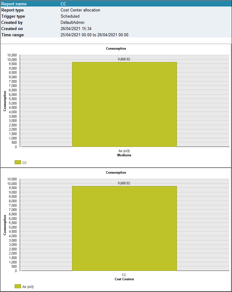 This report calculates the total energy consumption and costs for different mediums associated with each cost center. The report can be used for internal cost allocation.