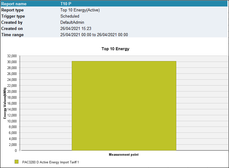 The Top 10 energy report displays the details of the top 10 consumers of the active energy and reactive energy across the powermanager system.