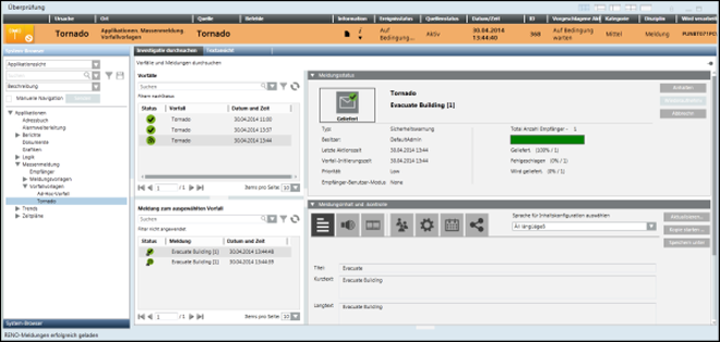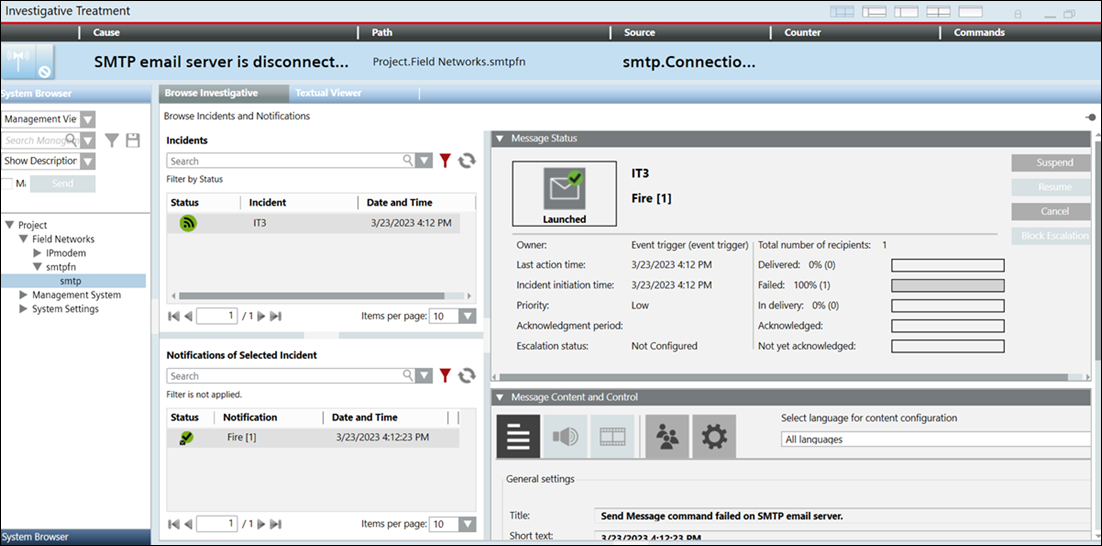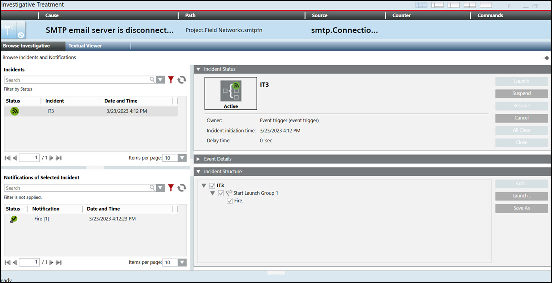 After clicking Initiate, the Browse Incidents and Notifications pane displays: