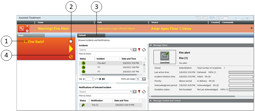 1 | Title | Displays the name of the Notification operating procedure step configured for manual execution mode, for example, Fire Swirl. |