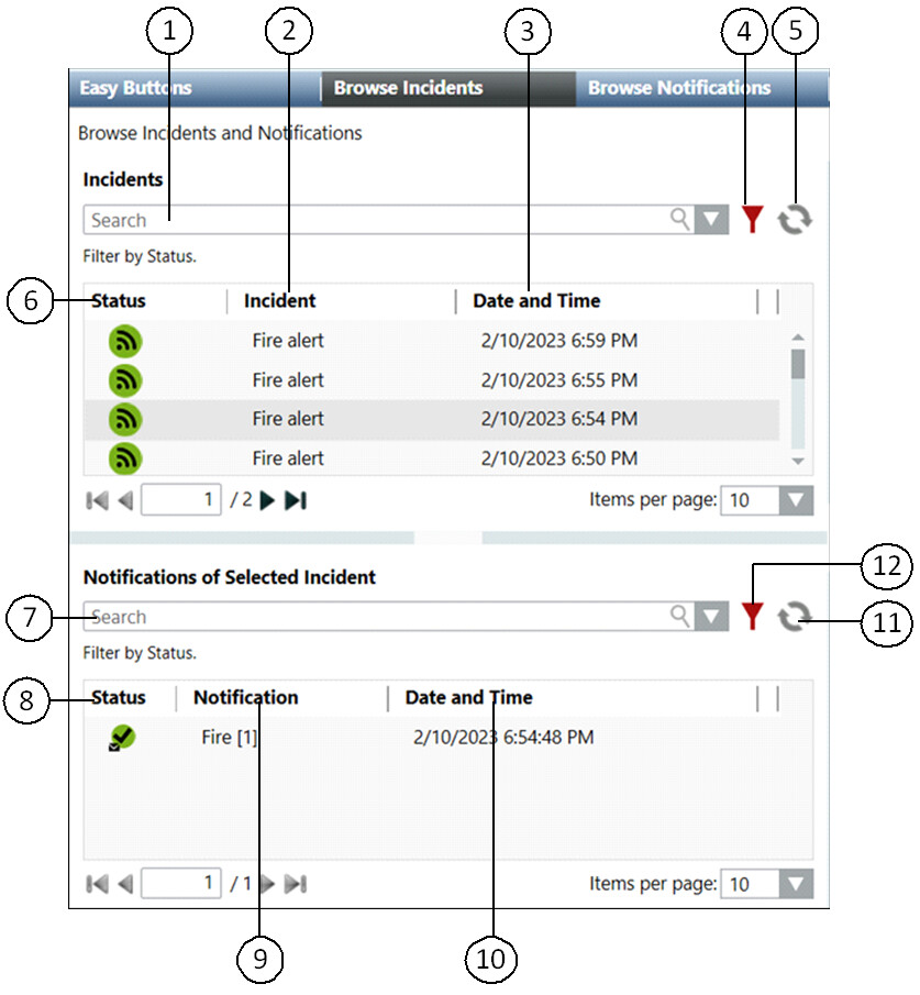 5 | Refresh | Refreshes the window to update the list of initiated incidents. |