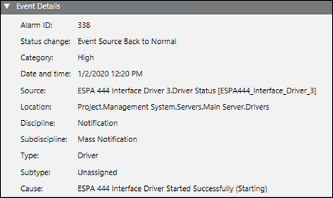 - Event Details: Displays the event information associated with an incident like alarm ID, Type, or cause.
