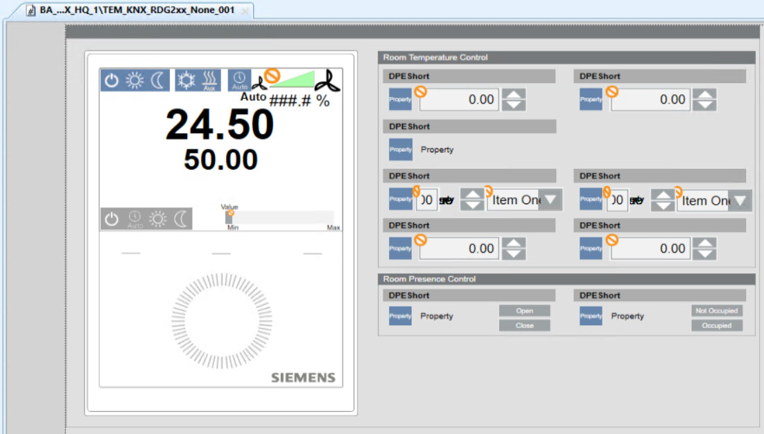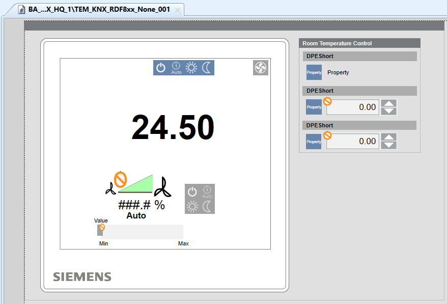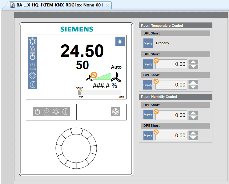In Engineering mode, this is graphic template for the RDF600KN and RDF600KNS flush mount room thermostats.