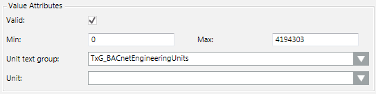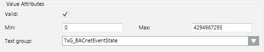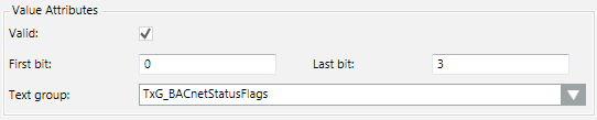 | Text Group | Sets the text group (such as, TxG_BACnet_Event_Transition_Bits_BACNET) that associates an array number to a corresponding text. For example: |