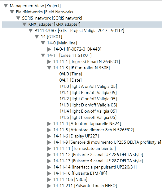 - Select Project > Field Networks > [SORIS network] > [KNX adapter].