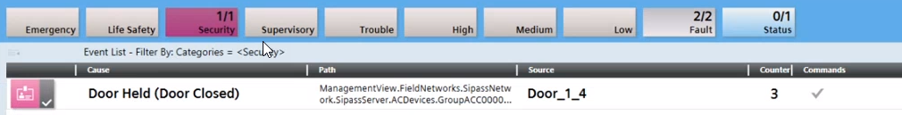 Scenario: Progress is displayed in the Summary bar. You need to know the exact location of the door before acknowledging the event. This workflow can be used on all events for a given door.