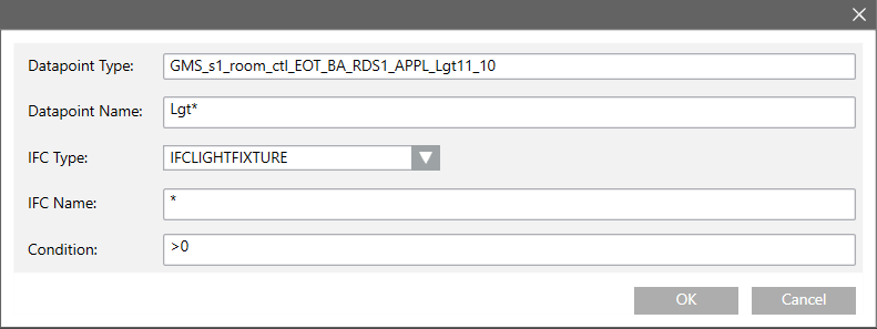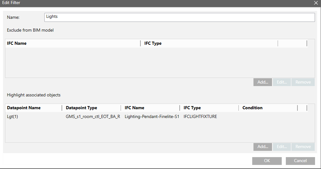 - Lgt(1) = Displays only lighting objects under this data point name;