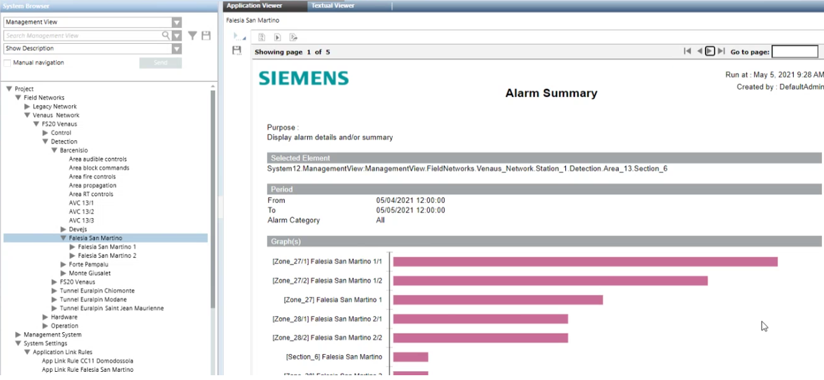 - The generated report displays in the Application Viewer tab. You can use the arrows on the top right to navigate the pages of the report.
