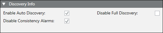 The Discovery Info expander displays information about the default BACnet device discovery settings, which you can modify.