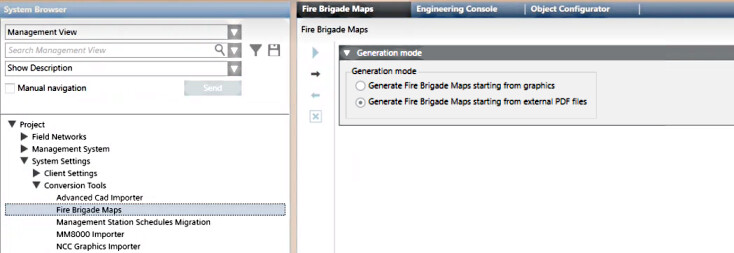 - In System Browser, select Project > System Settings > Conversion Tools > Fire Brigade Maps.