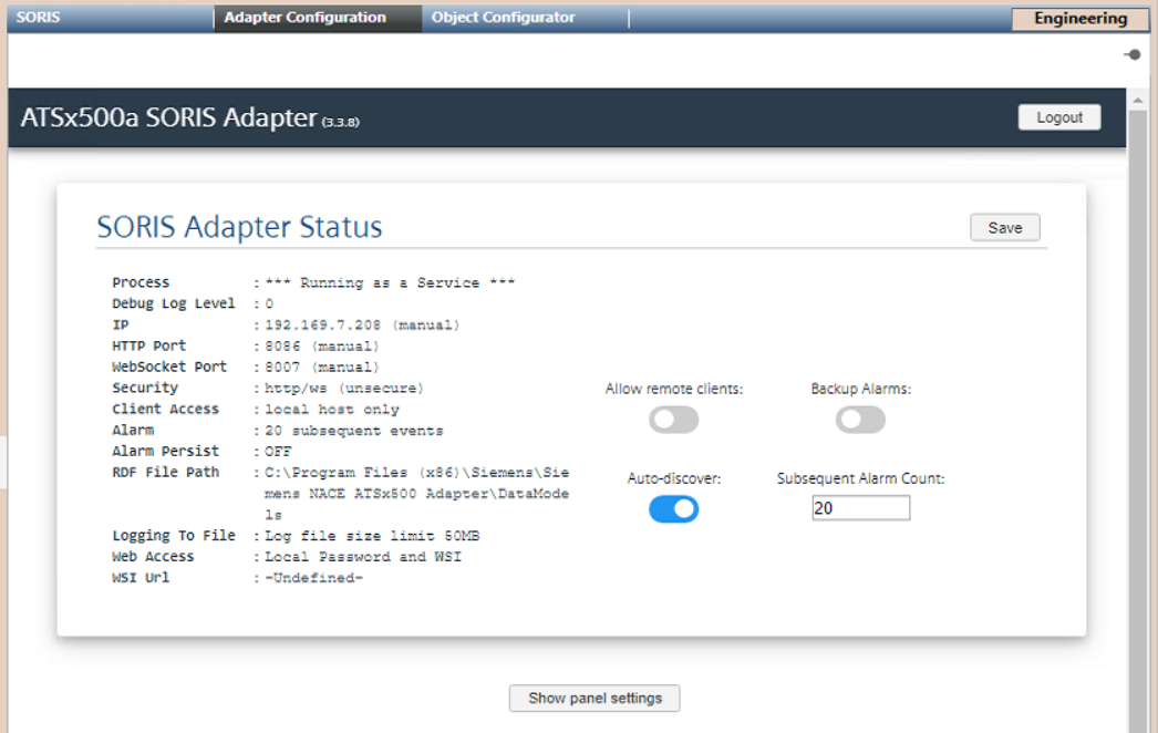 Allow remote clients (if available), to set if the adapter is installed on a separate PC.