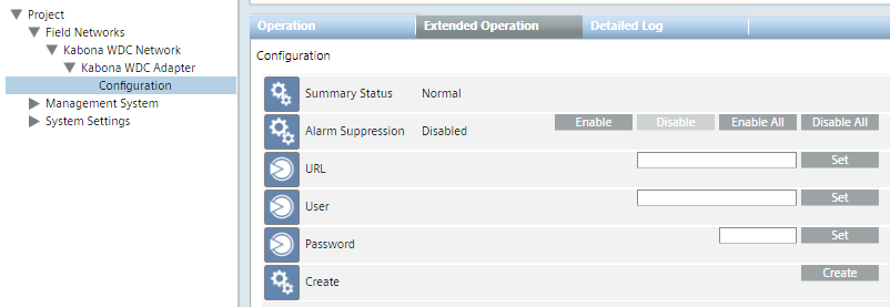 1. Select Project > Field Networks > [SORIS network] > [Kabona WDC Adapter] > [Kabona WDC Configuration]