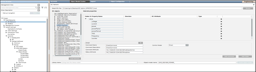 Name of the IEC61850 library. You must drag the library object from the System Browser.