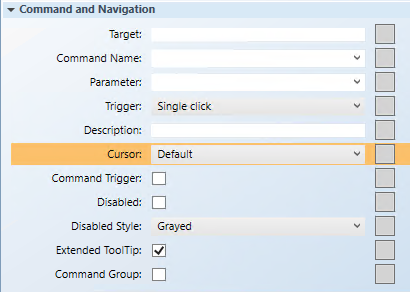 9. The Extended Tooltip check box is selected by default. It displays the following command object details: Target, Command Name, and Parameter. If enabled, the extended tooltip is added to any existing tooltips configured for the element.