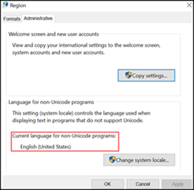 • The LocaleName is set according to the current Regional settings. To verify the Regional settings, navigate to Control panel > Region > Administrative.
