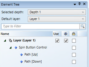 6. Navigate to the Element Tree view, select the element that represents the DOWN spin button, and hold down the CTRL key and select the Spin Button Control and right-click.