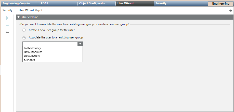 Alternatively select Associate the user to an existing user group and select the group in the drop-down list.