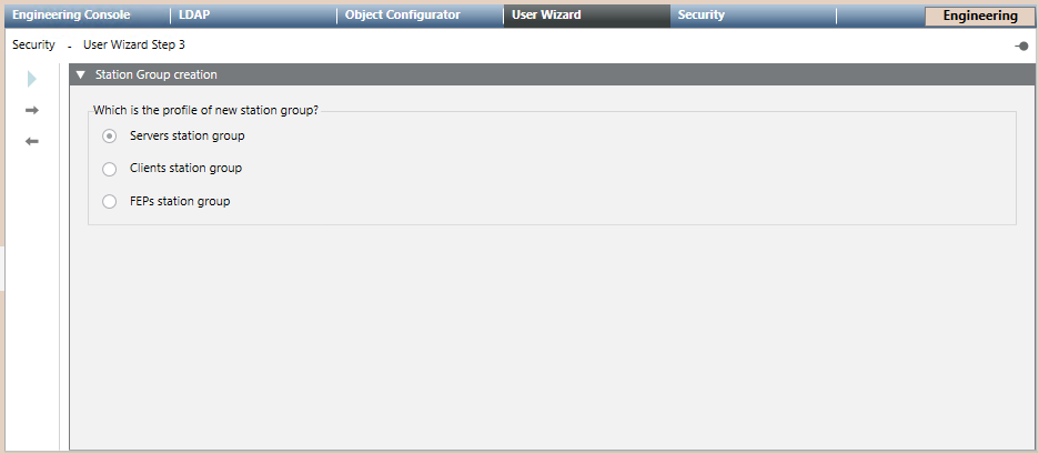 1. You are in the User Management Wizard step 3 – Station group creation.