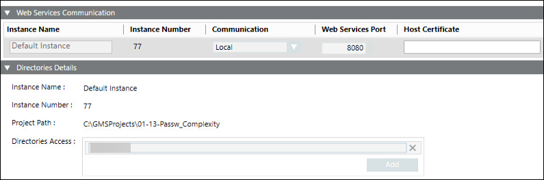 NOTE: Do not confuse this with the Communication Security expander on the first page. The Web Server Communication section there is not required for Web Services and can be left Disabled. - In the expander, locate the communication instance you want to use (each one is on a separate row), or click Add to create a new one.