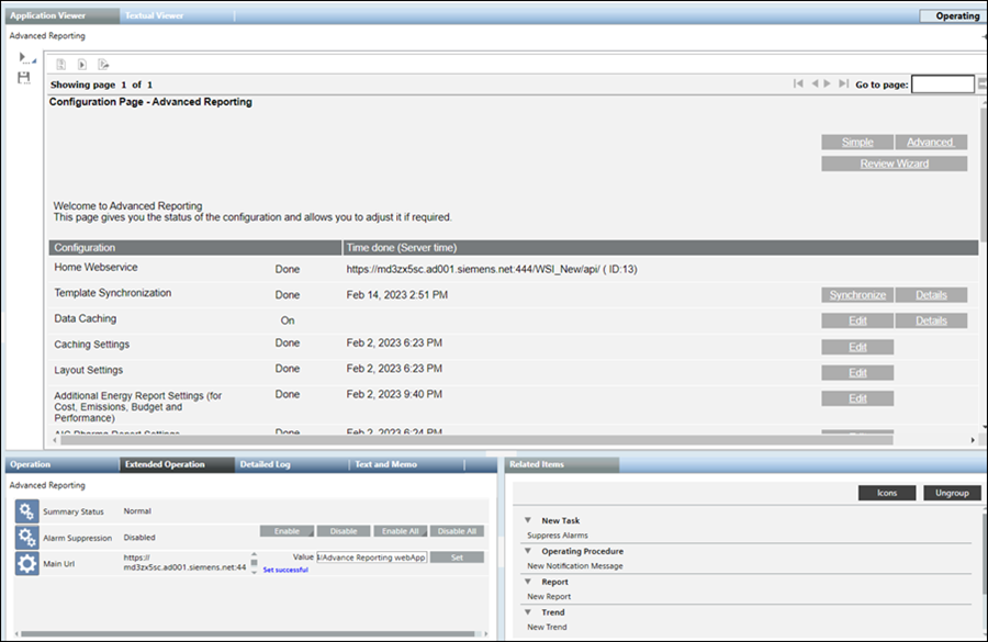 The Configuration Page - Advanced Reporting displays the configuration status of advanced reporting on your system. It also provides options to further optimize the configuration settings.