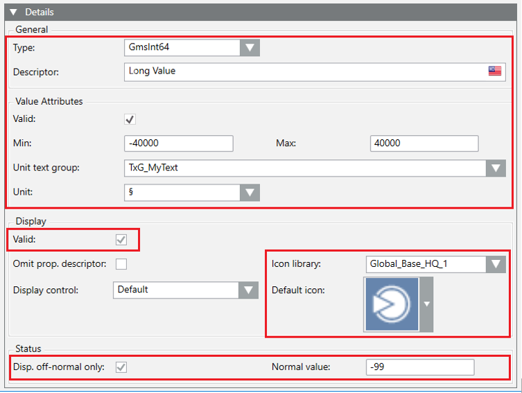 Object containing the valid range values. For more details see Table GmsInt64 Properties. If the object is empty (“Properties”: { }), the range values are reset, and the range is Int64.MinValue ÷ Int64.MaxValue.