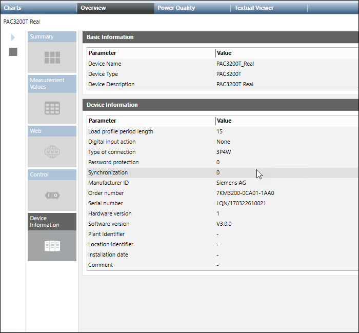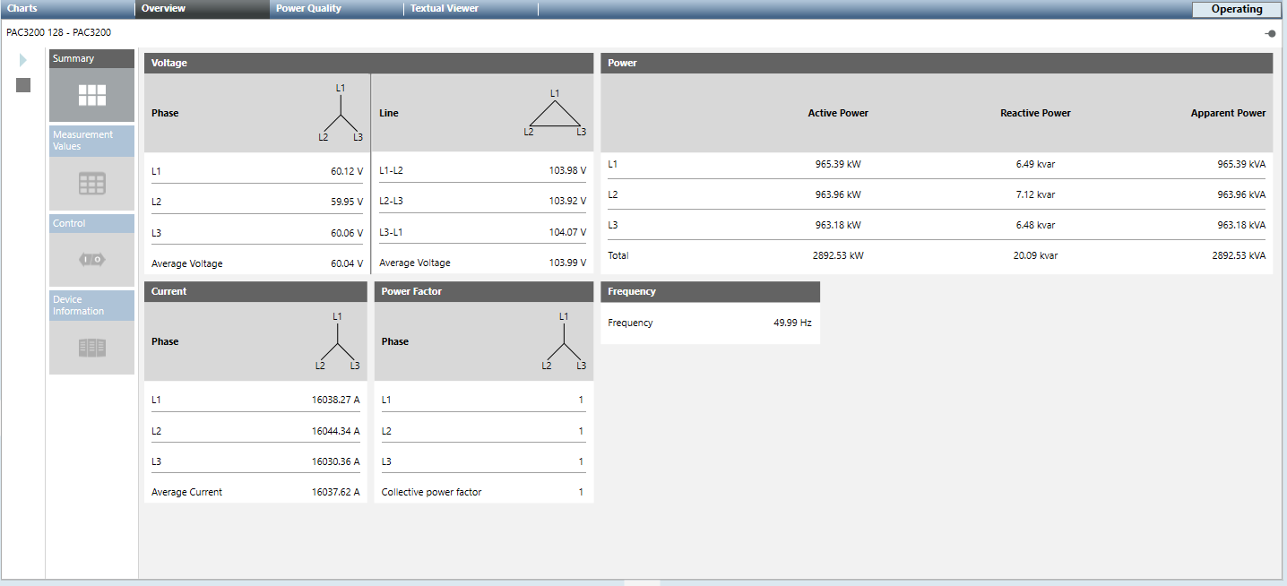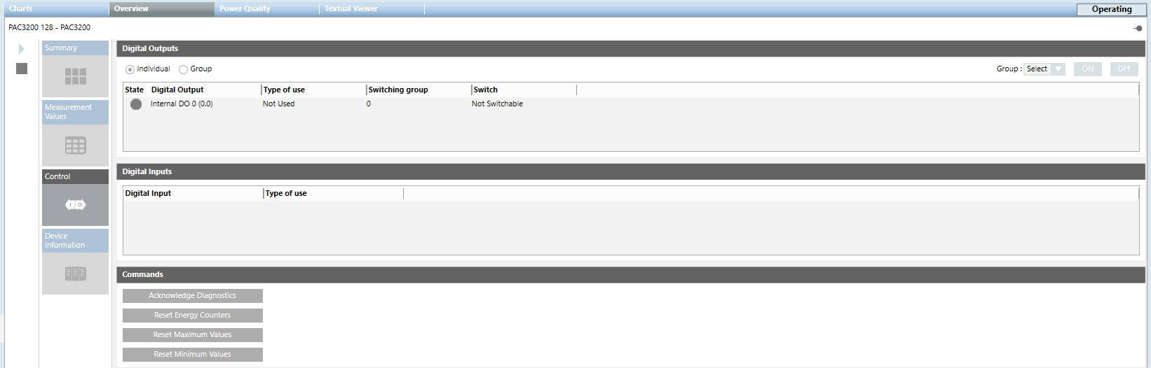 When an N-Conductor module is connected to a PAC3200 or a PAC4200 device, the N-Conductor details are displayed. The I5, I6 and In values are displayed in this section. Also, the neutral current measured are also displayed in the Summary tile.