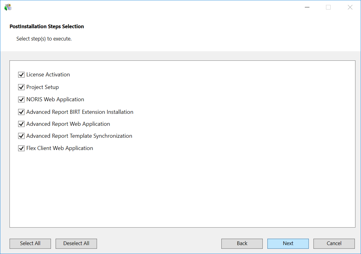 NOTE: Only those post-installation steps are displayed in PostInstallation Steps Selection dialog box for which the value for the tagExecute = AskUser