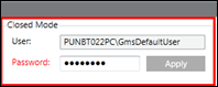 If the Closed mode user password is not the same as the Windows user password, the SMC indicates this in red in the Closed Mode section in the Settings expander, see Configure Closed Mode User Settings.