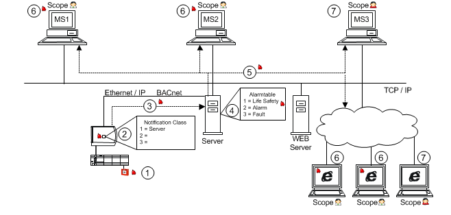 The corresponding alarm information in the appropriate priority class is displayed for the Scope user.