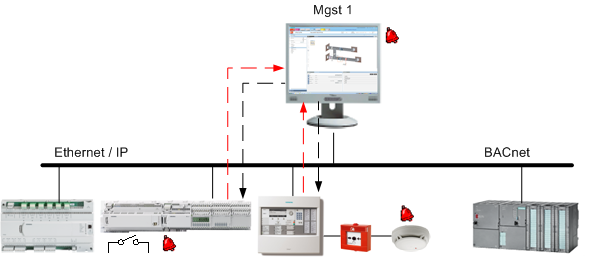 These alarms are set up and configured on the Desigo CC management platform A set up alarm can only forward an event when the Desigo CC management station is operational. As a result, reliability depends on the availability of Desigo CC.